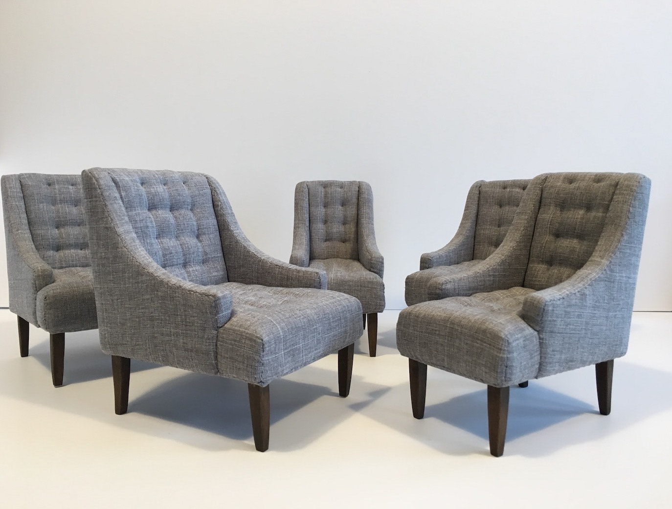 Crisp, tailored lines give this tufted loveseat and chairs a confident modern attitude in a size that fits just about anywhere. SETTEE Dimensions: 7.25"W X 5.5"D X 6"H SIDE CHAIRS Dimensions: 4.375"W X 5.5"D X 6"H NARROW SIDE CHAIRS Dimensions: 3"W X 5.5"D X 6"H