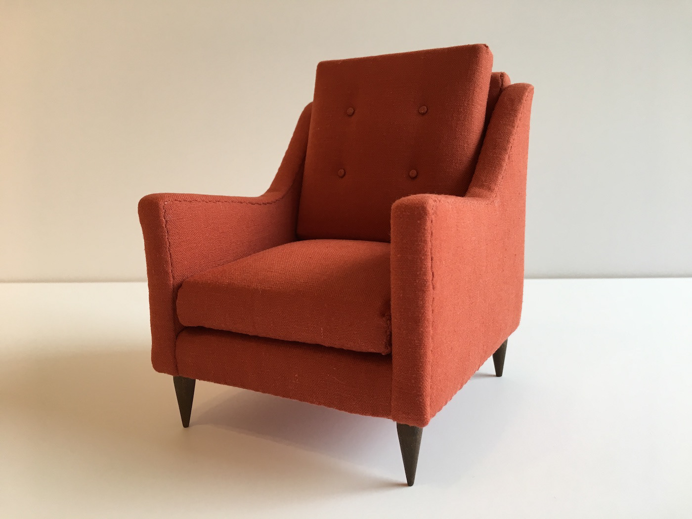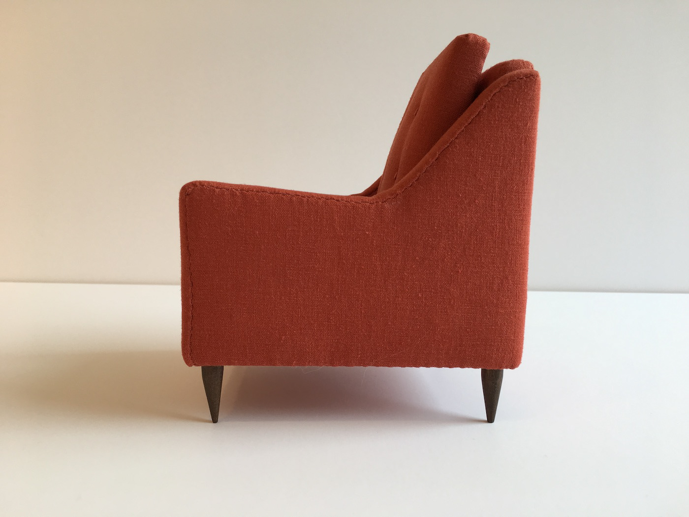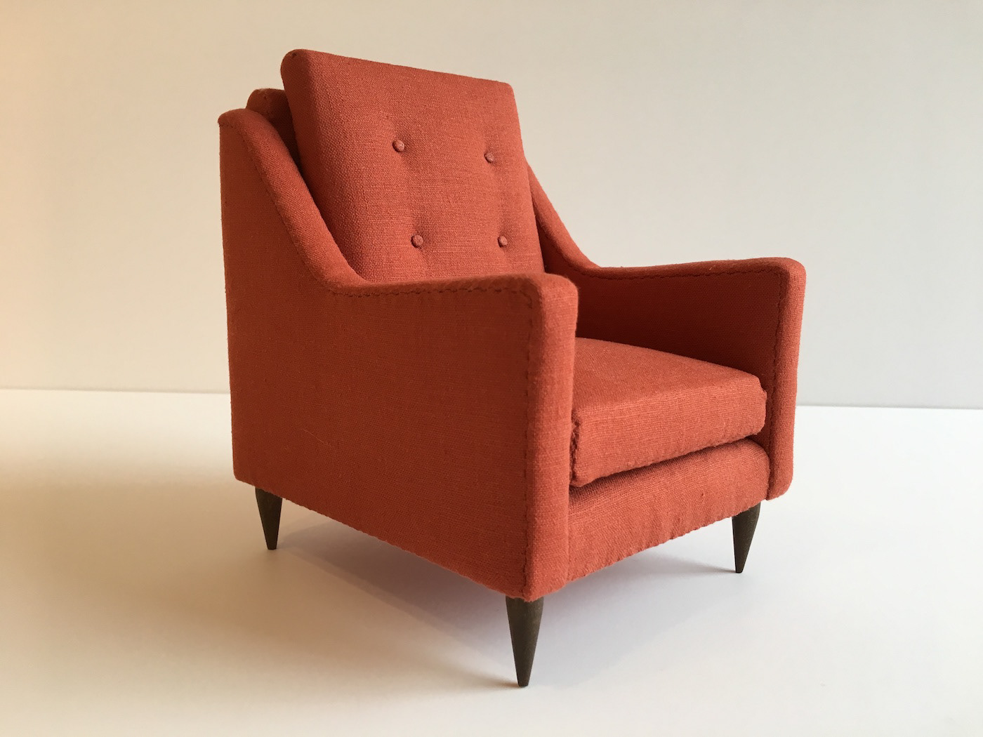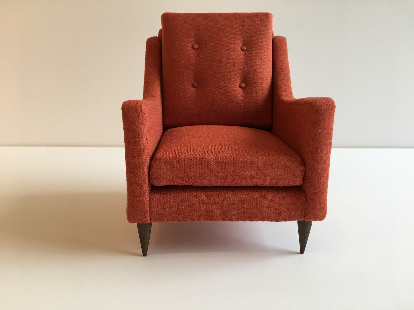 Featuring classic mid-century design elements and with updated features, the Milo is a wonderful addition to any room. Details include a removable seat cushion, hand-turned legs, and tufted back cushion. Dimensions: 4.75"W x 5.5"D x 6.75"H