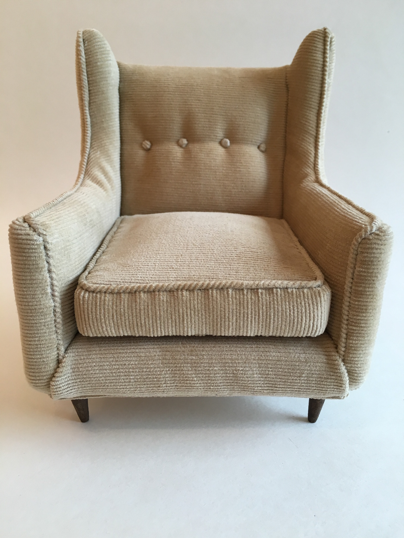 Featuring a funky mix of mid-century design elements, the Callahan is a versatile piece. Its casual design and upscale tone is equally at home as a casual chair or as part of a more sophisticated formal living space. Details include a removable seat cushion, stained, hand-turned legs, a plush pinwale cotton fabric, and a tufted back. Dimensions: 5"W x 5"D x 6"H