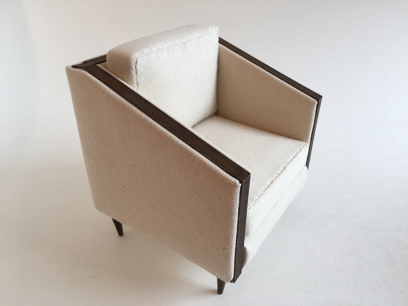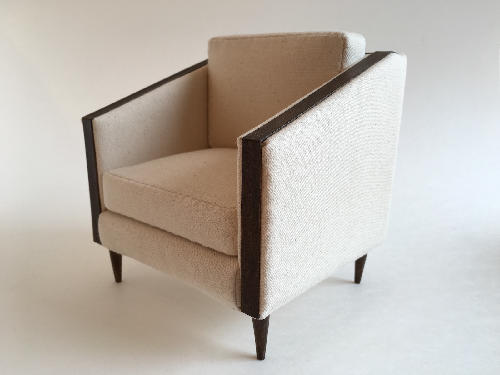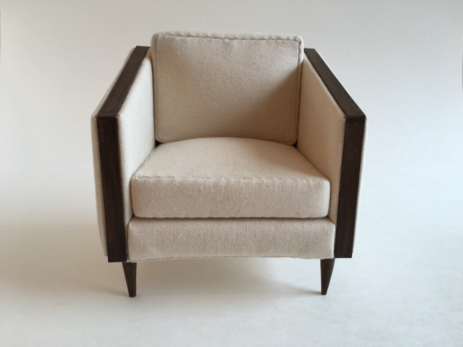 An arm chair in the style of Maryann Roy. Dimensions: 5.625"H x 5.125"W x 4.5"D